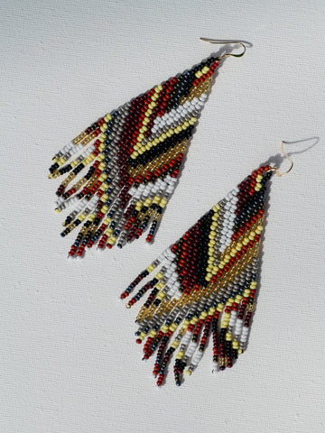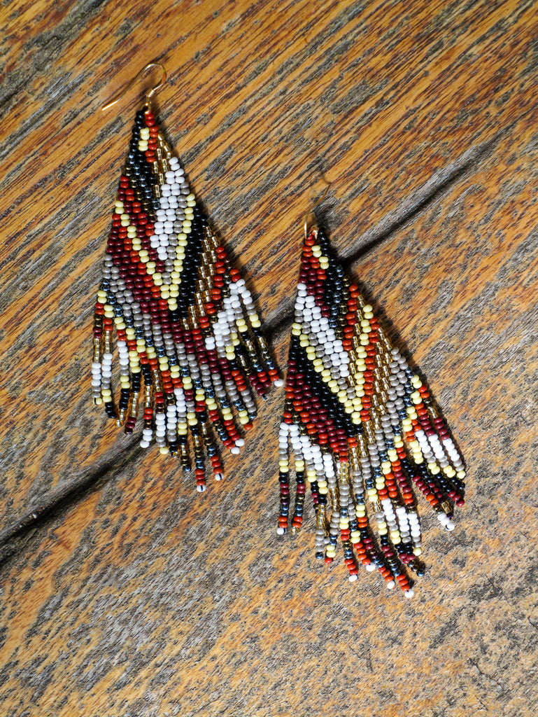 These fringe earrings are inspired in our colorful flowers! They will make you feel like a cutie! The contrast between the teal, pink and red will definitely catch anyone’s eye. They are on the bigger side of our beaded earring collection.
