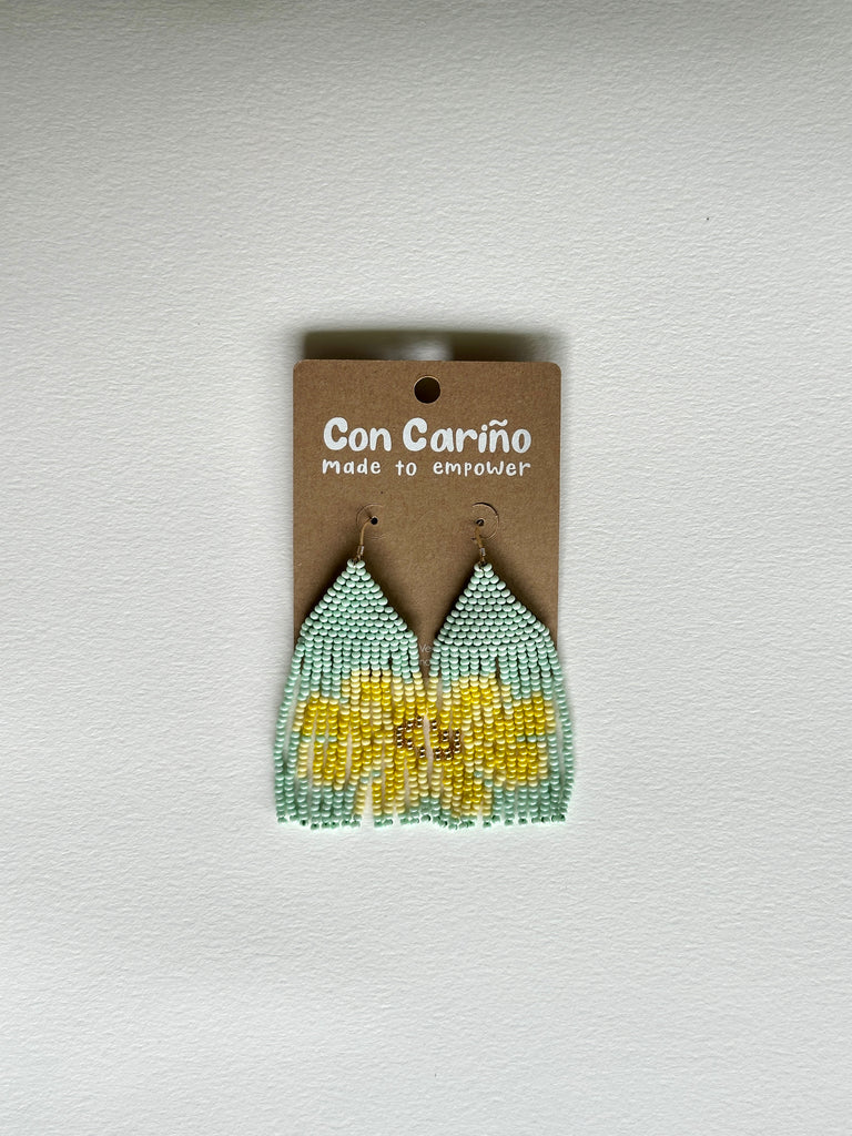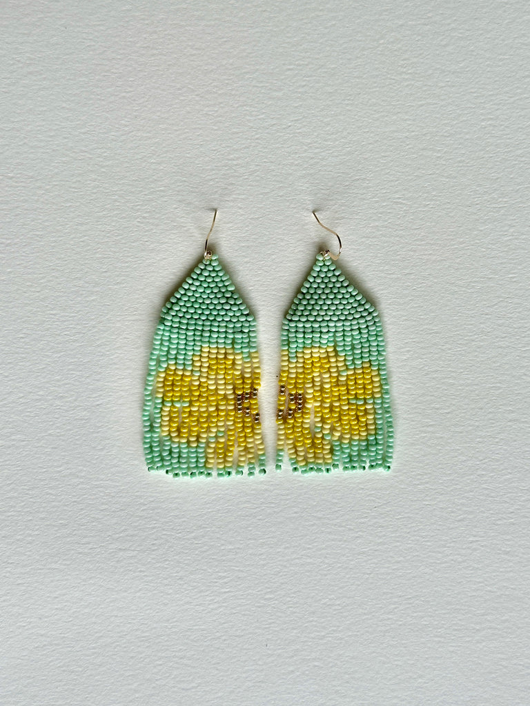 These fringe earrings remind me of the hibiscus flowers in Hawaii and they will make you feel like a cutie! The contrast between the teal, pink and red will definitely catch anyone’s eye. They are on the smaller side of our beaded earring collection.