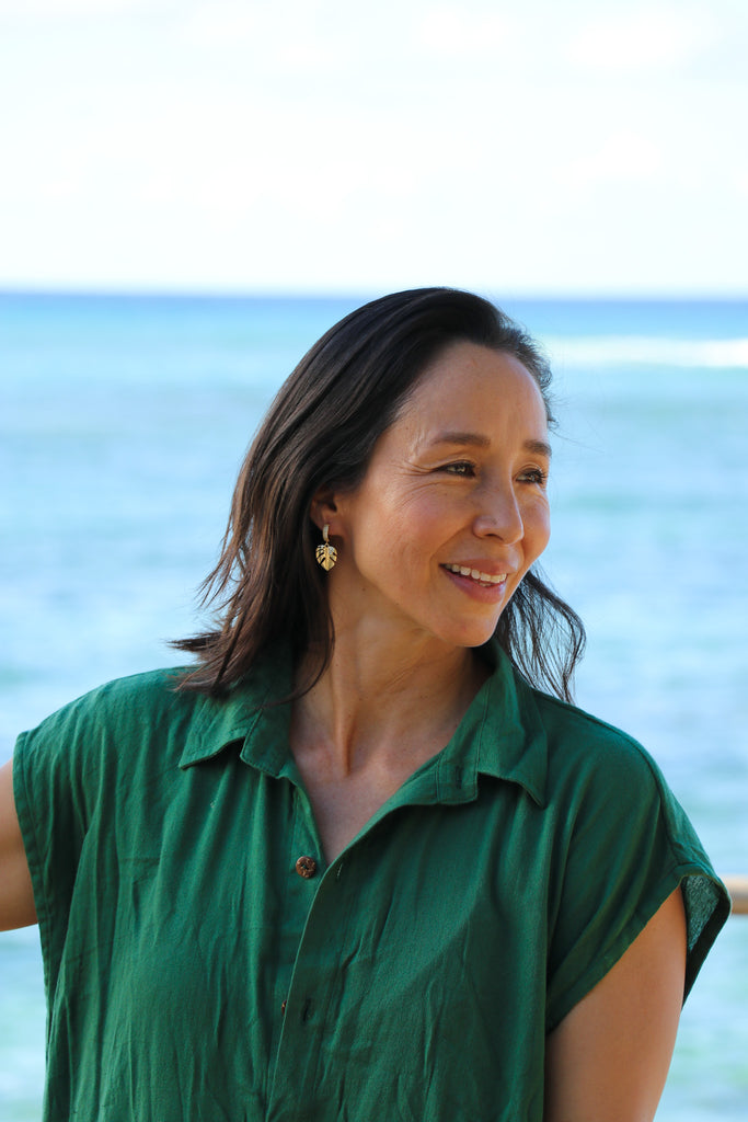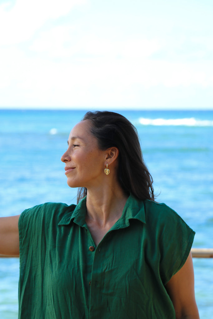 Fancy Monstera Huggie Earrings